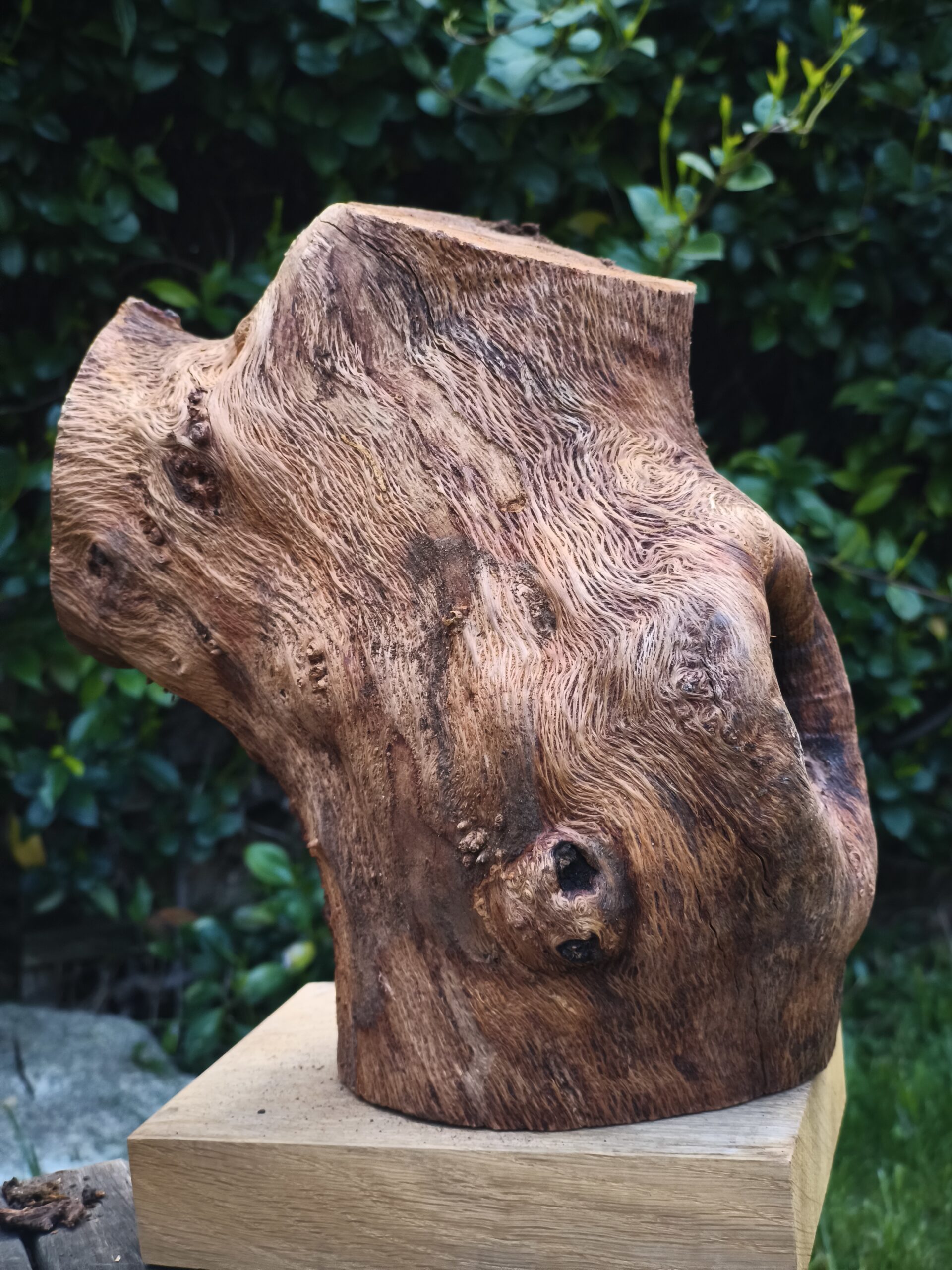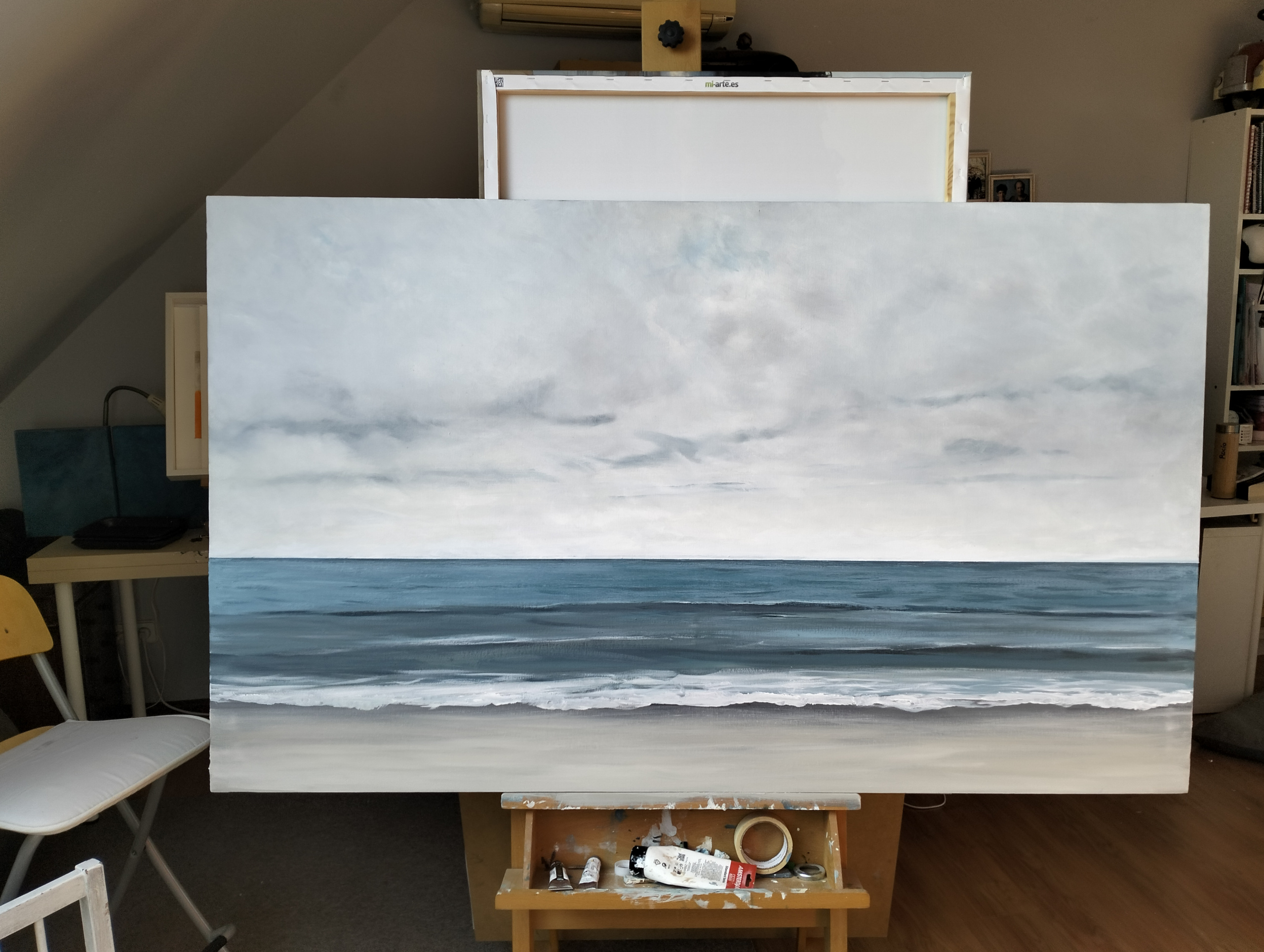 Su pintura destaca por marinas expresivas con cielos protagonistas y atmósferas íntimas. En escultura, explora la nobleza de la madera con una figuración intuitiva. Su faceta más experimental combina fotografía, vídeo y pintura en obras de fuerte carga conceptual. Actualmente compagina proyectos de escultura y pintura, manteniéndose fiel a una visión artística que une materia, emoción y búsqueda formal.